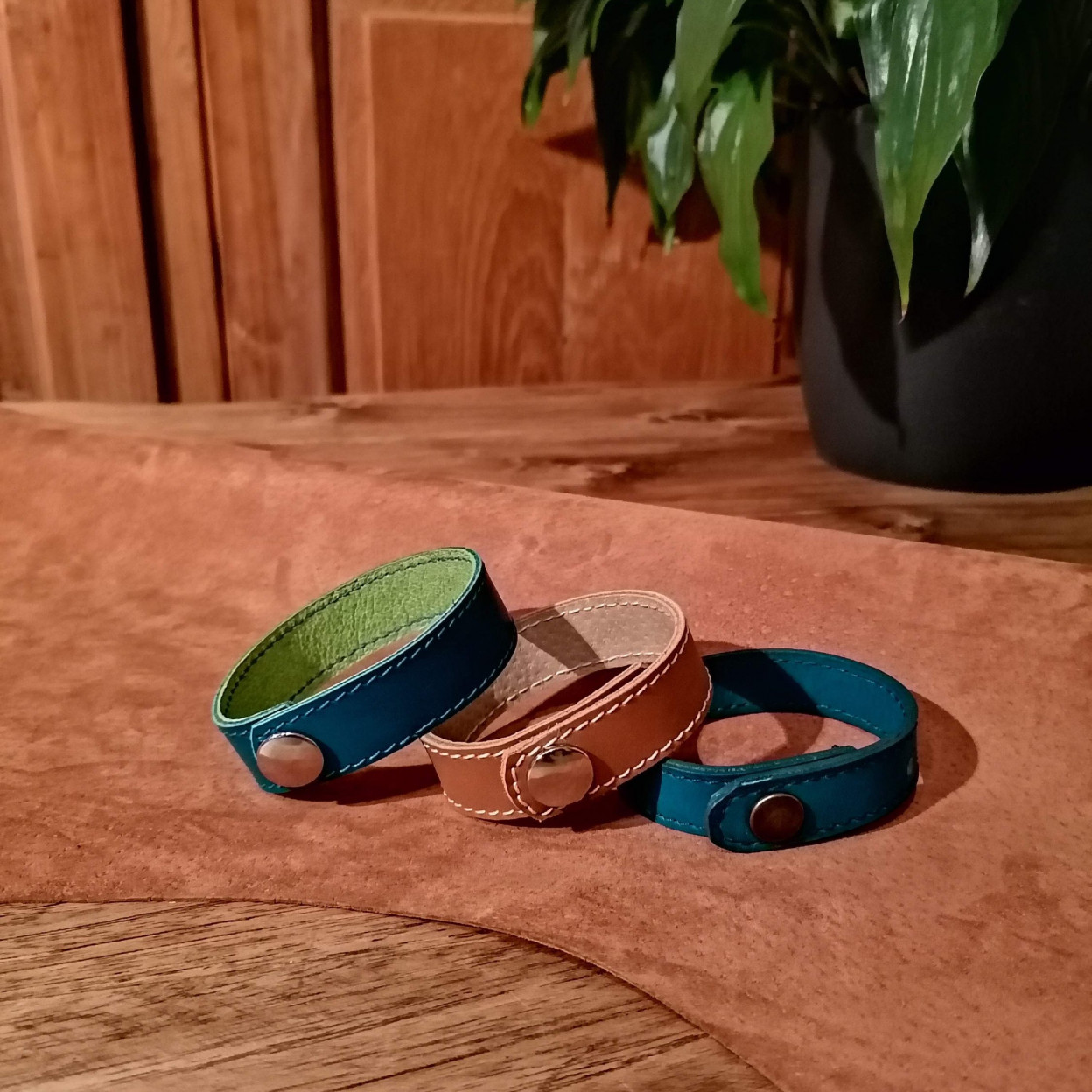 Binnen en buitenkant in leer. kleur naar keuze stiksel naar keuze.