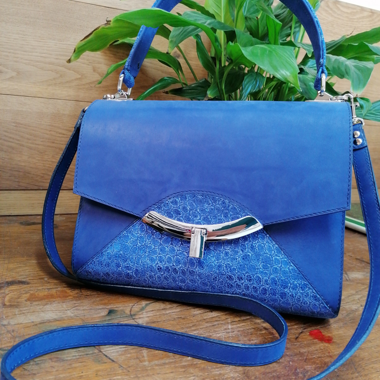 - 2 soorten kobalt blauw leder effen en bedrukt.