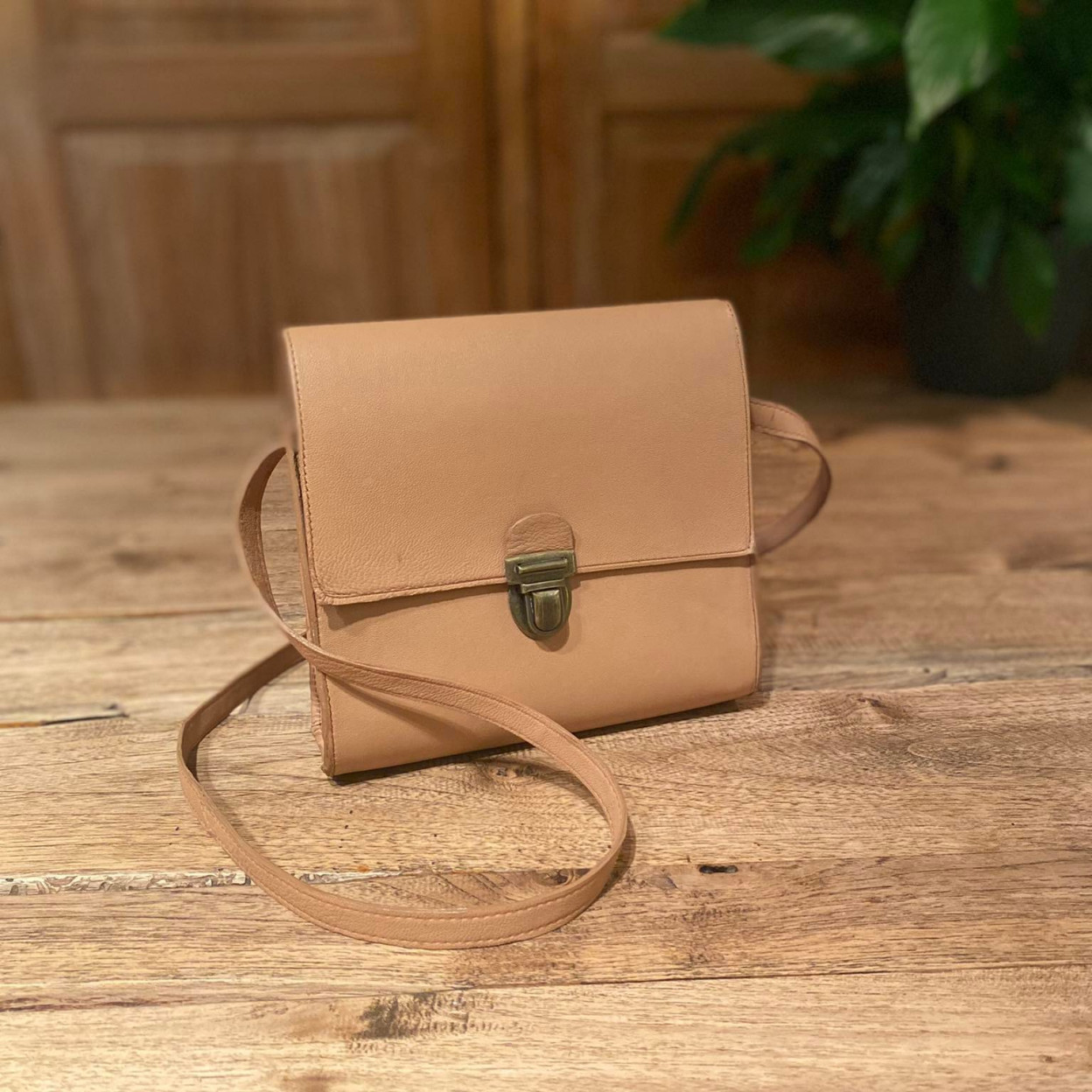 Eenvoudig lederen handtasje. Met boekentasslot.